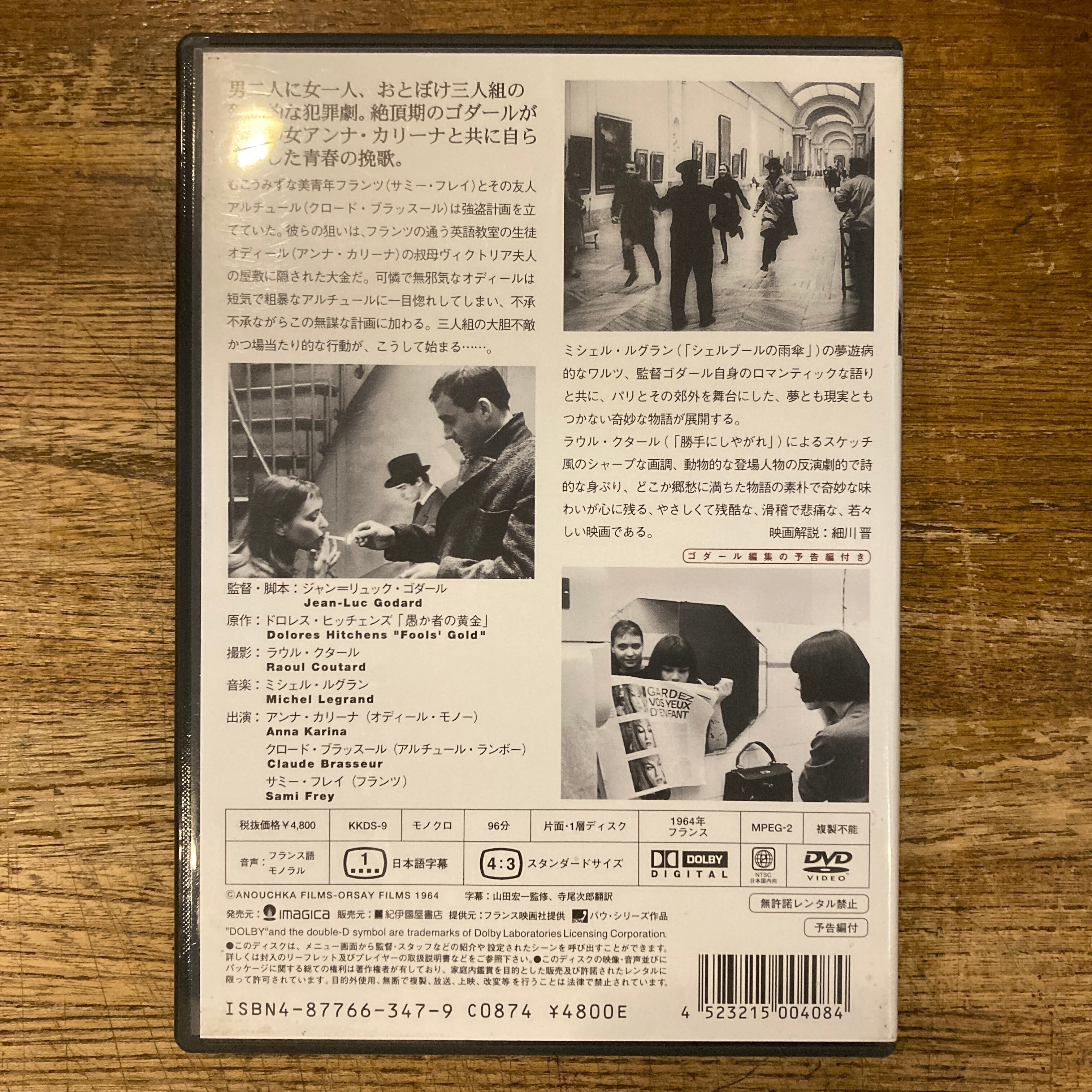 はなればなれに ジャン=リュック・ゴダール監督 bande a part Jean=luc Godard DVD Cinefil Imagica