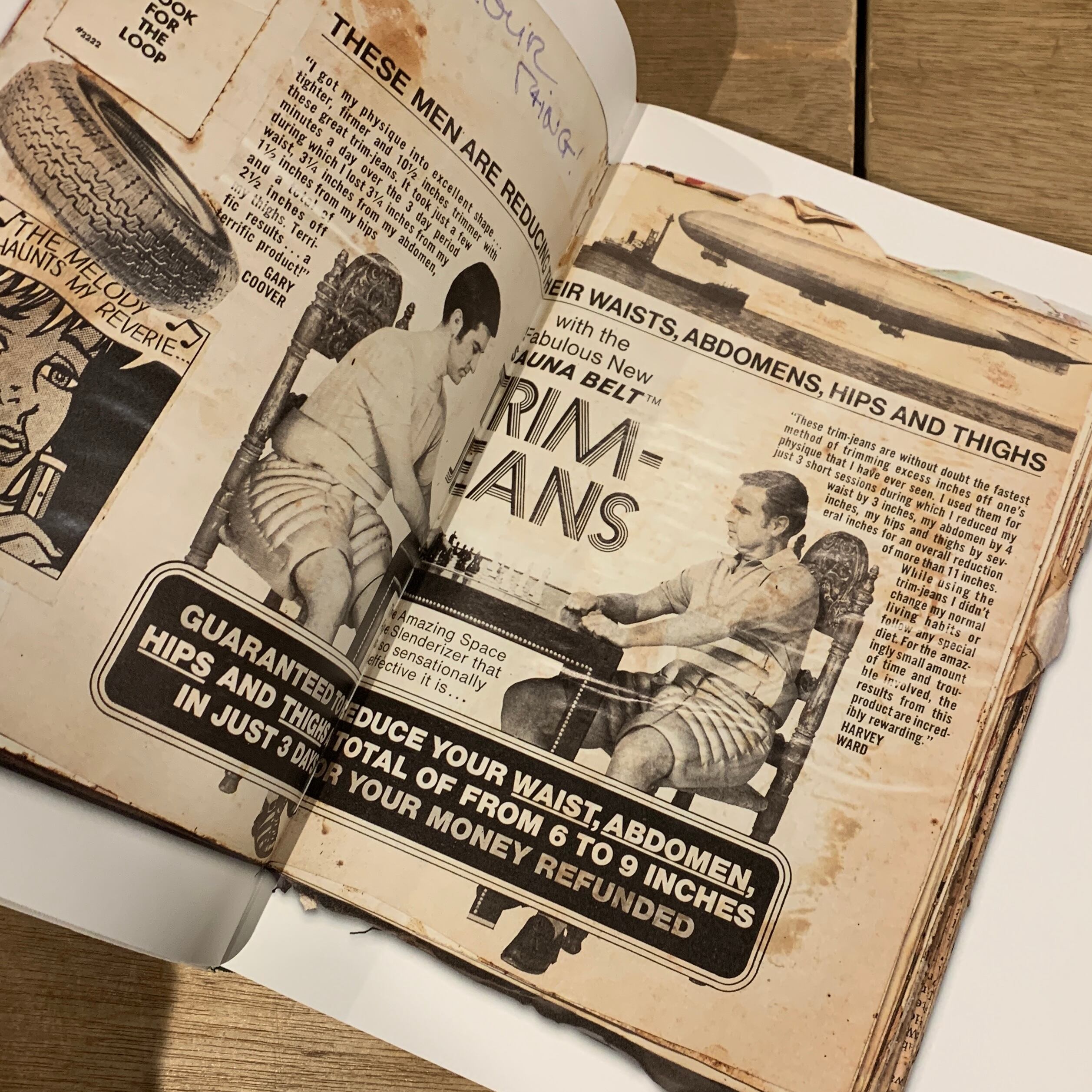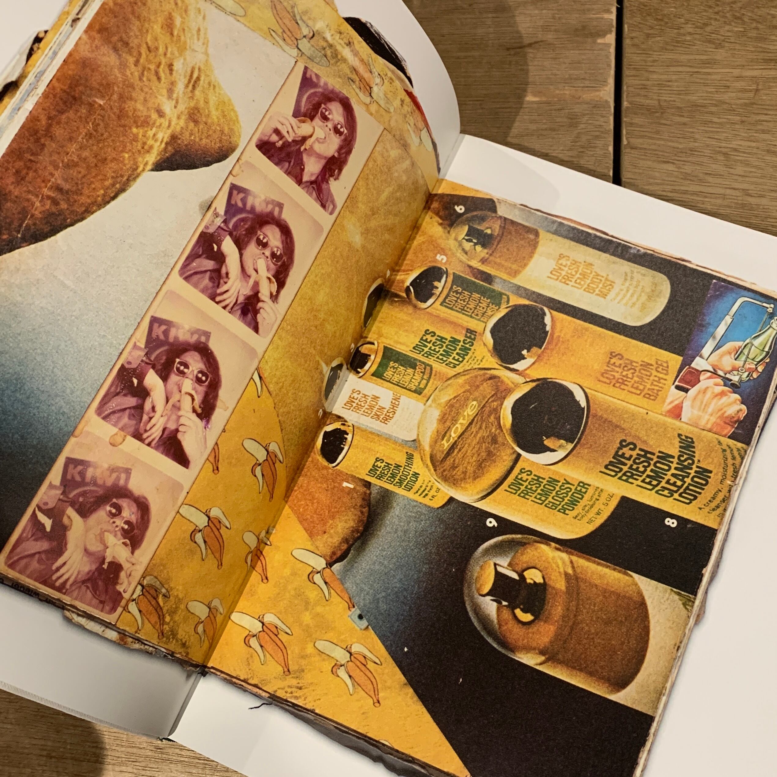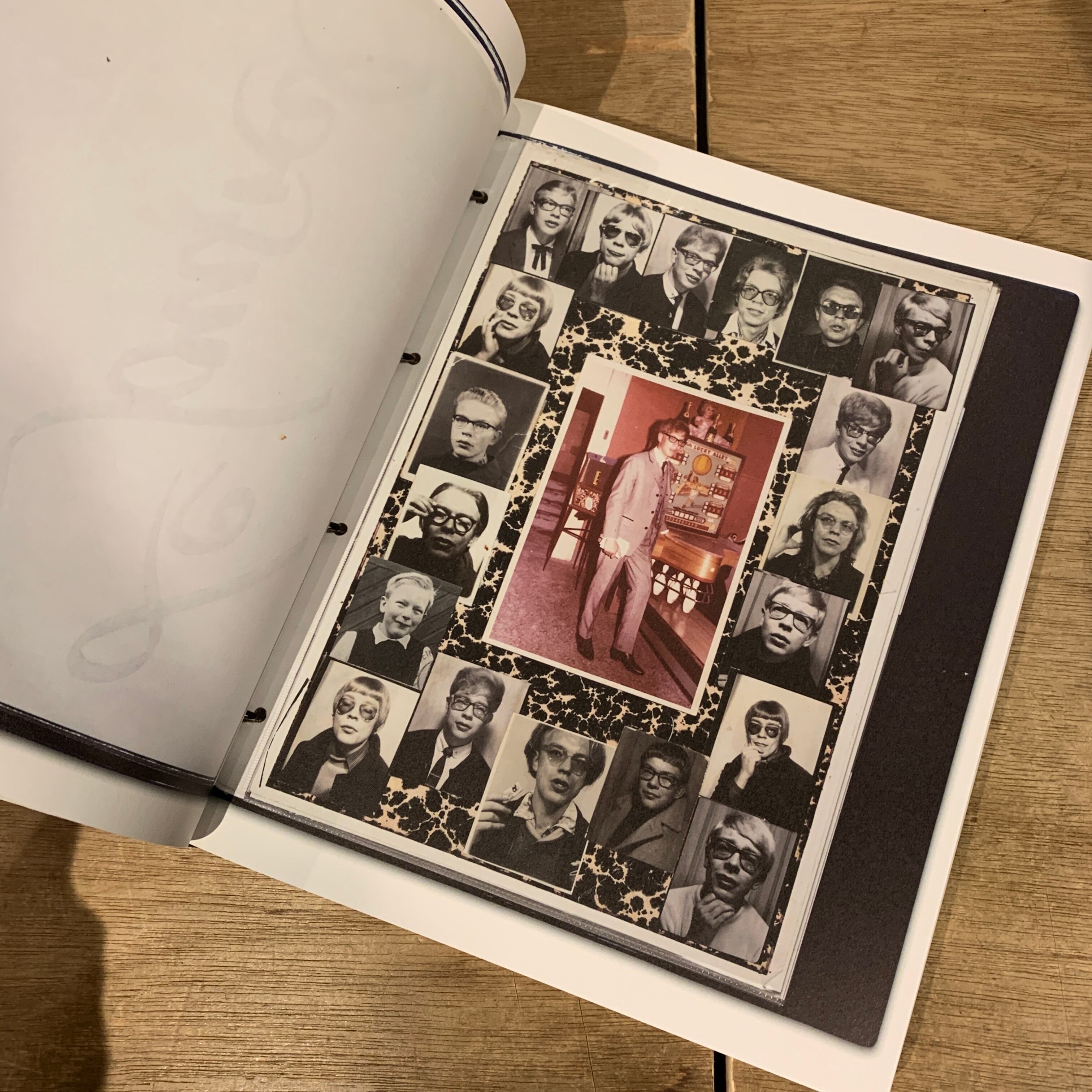 60年代後半、20代頃から趣味として作り続けられたそれには時代を写す広告などの切り抜きから、作家自身の証明写真と思われるものまで、生きてきた時代の断片が閉じ込められています。