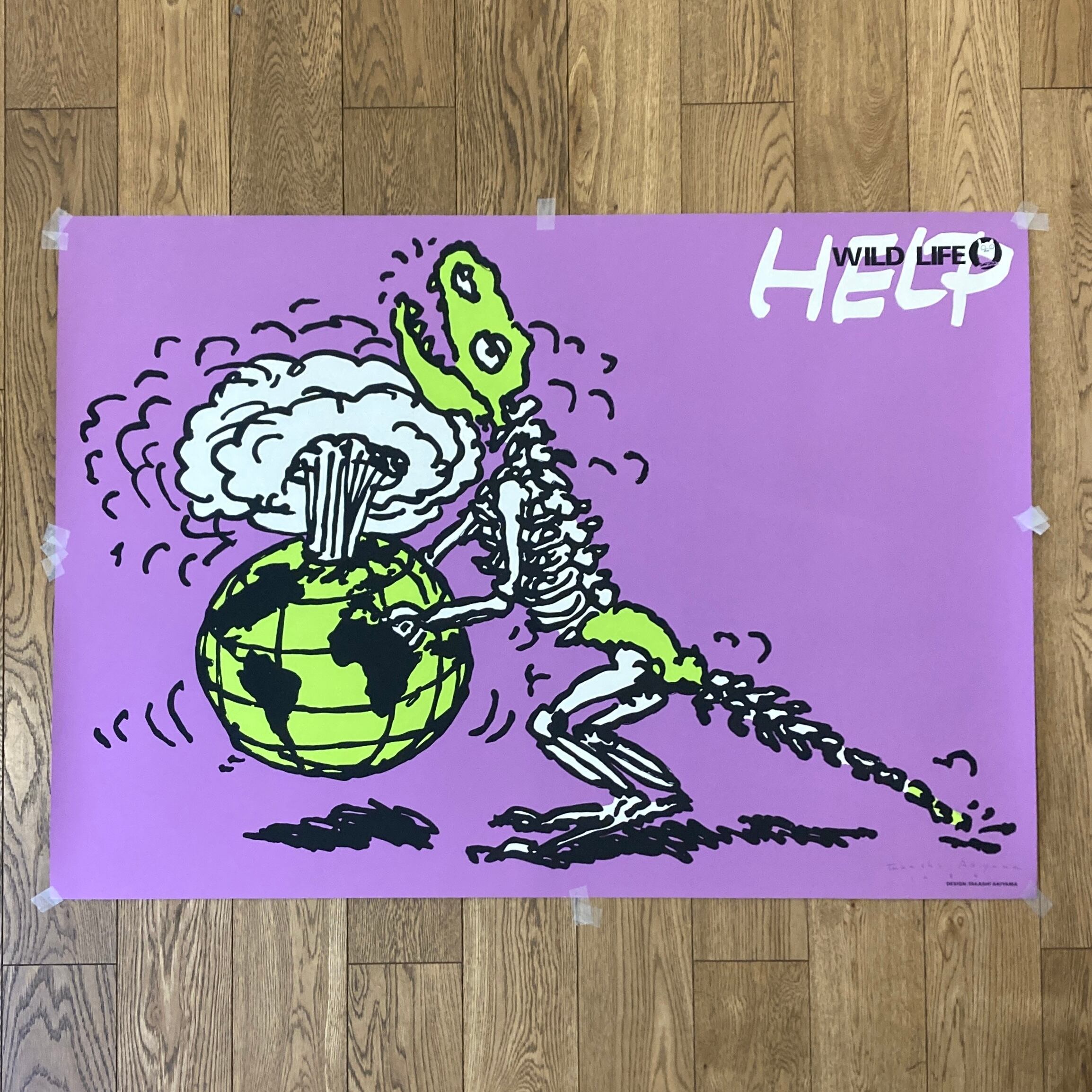 秋山孝 サイン入シルクスクリーンポスター THE PROTECTION OF NATURE: AFRICA, WILD LIFE: HELP / Takashi Akiyama